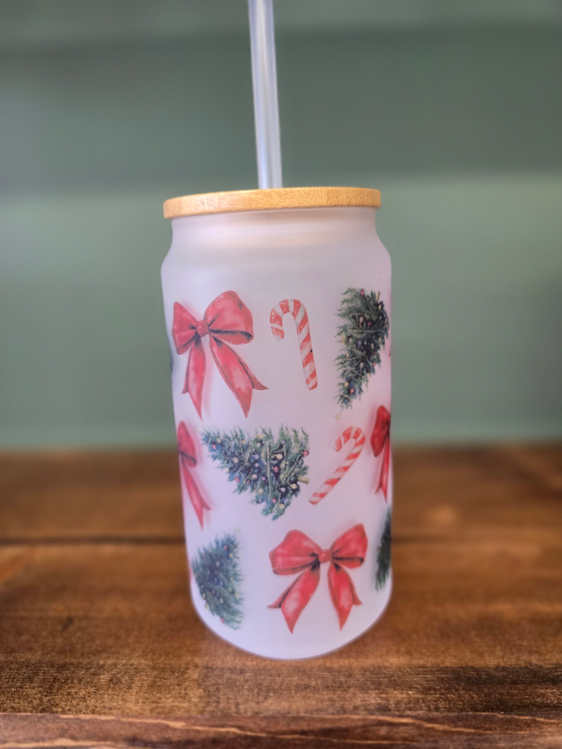 These 16 oz sublimated glass bamboo lid tumblers are perfect for gifts. They are beautiful. Fully wrapped Christmas designs. Hand wash only