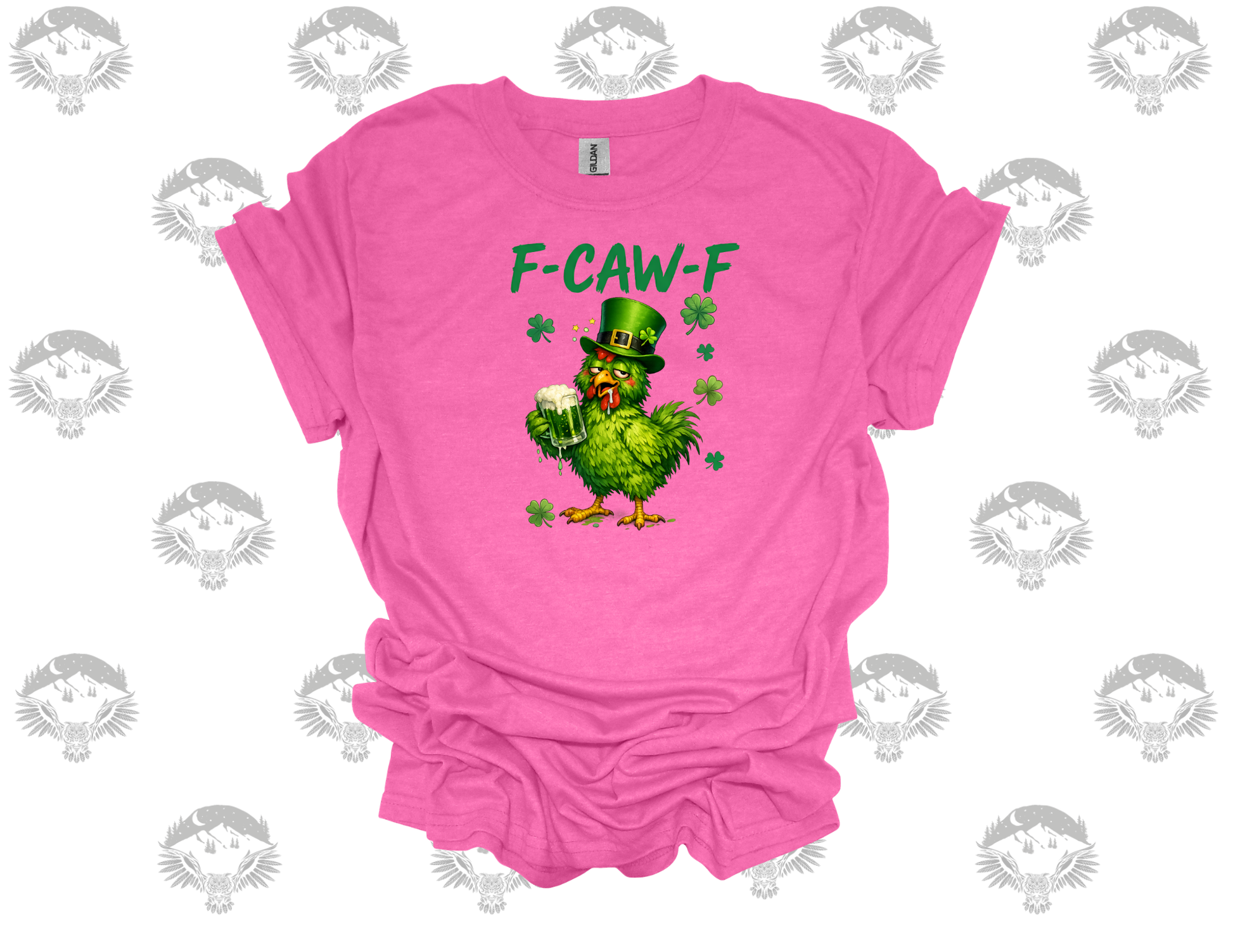 Bring the laughs this St. Patrick’s Day 🐔🍀 This cheeky design features a mischievous green chicken sipping a cold one while rocking a festive top hat that reads “F-Caw-F.” Silly, bold, and just a little rebellious — it’s perfect for parties, pub crawls, or anyone who loves humor with their holiday spirit.