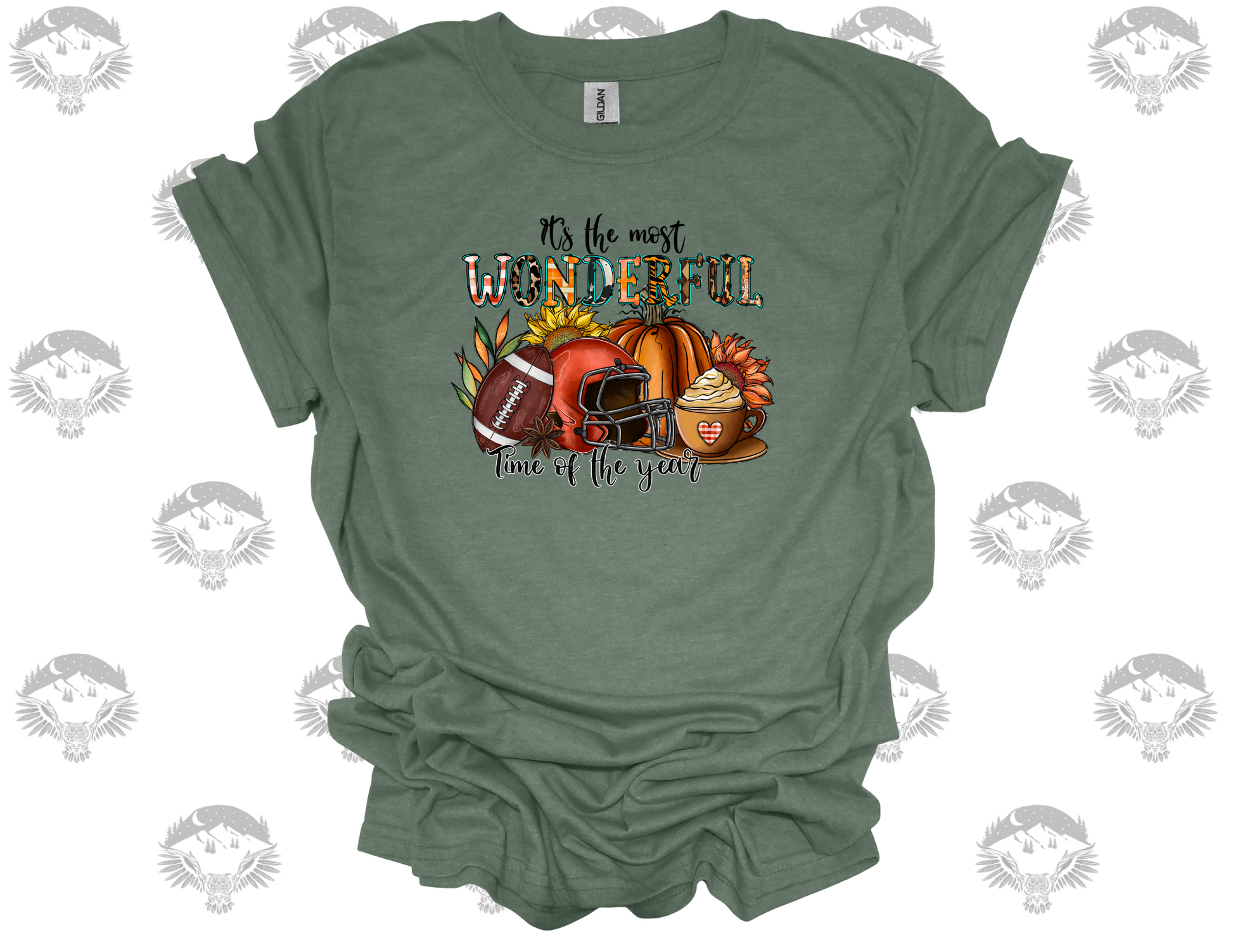 Available on a unisex Gildan Softstyle tee (3 colors) or a cozy crewneck sweatshirt (2 colors), so you can pick your perfect fall fit whether you're tailgating, sipping a PSL, or running errands before kickoff.
