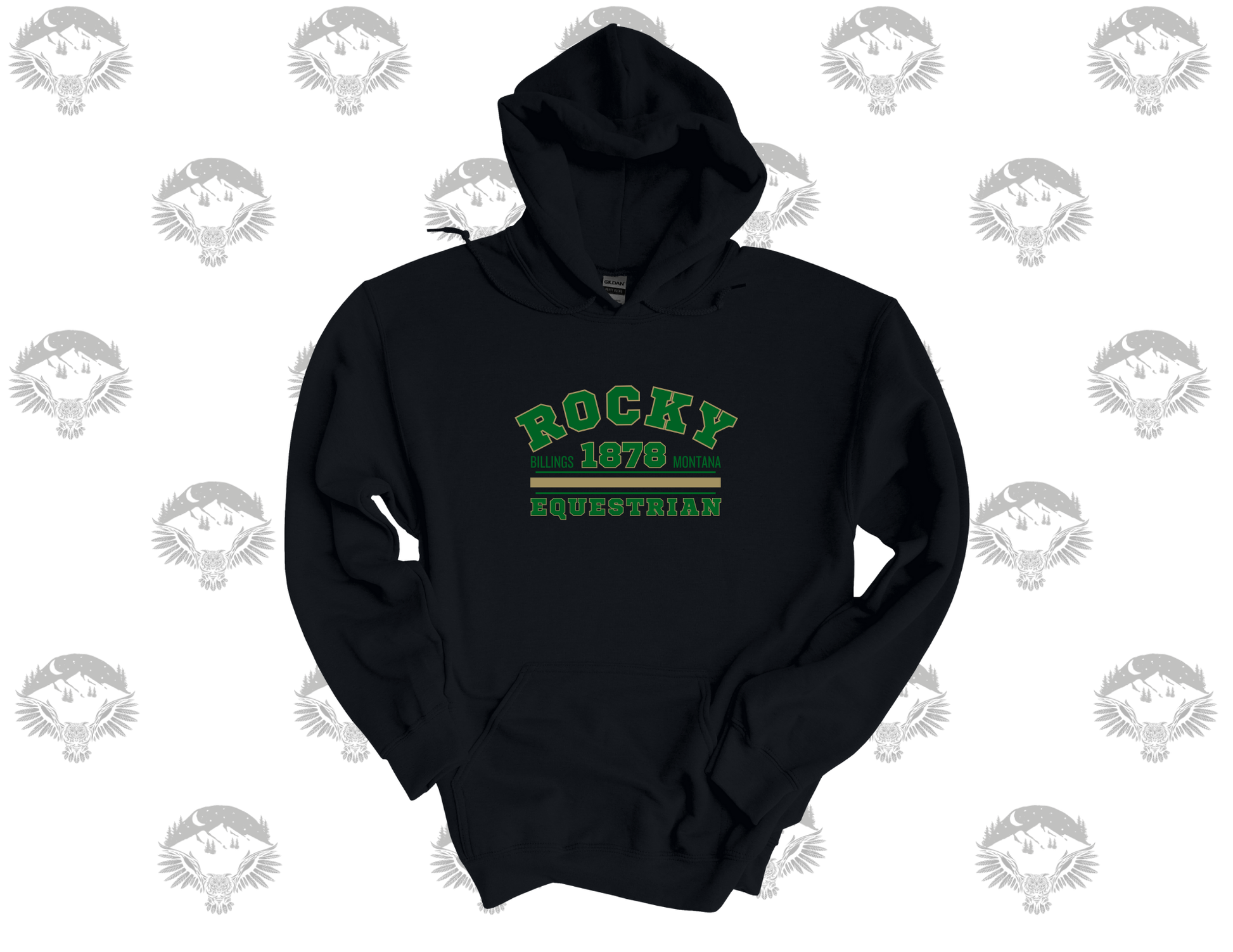 Stay warm and show your team pride with our Rocky Equestrian Hoodie Sweatshirt, available in classic grey and bold black.